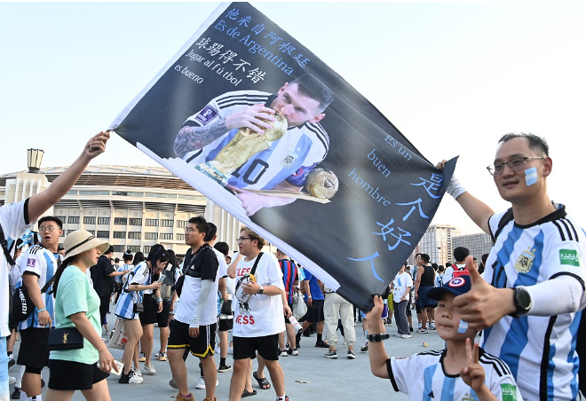 球迷们在场馆体育场观看阿根廷与澳大利亚之间的友谊赛。